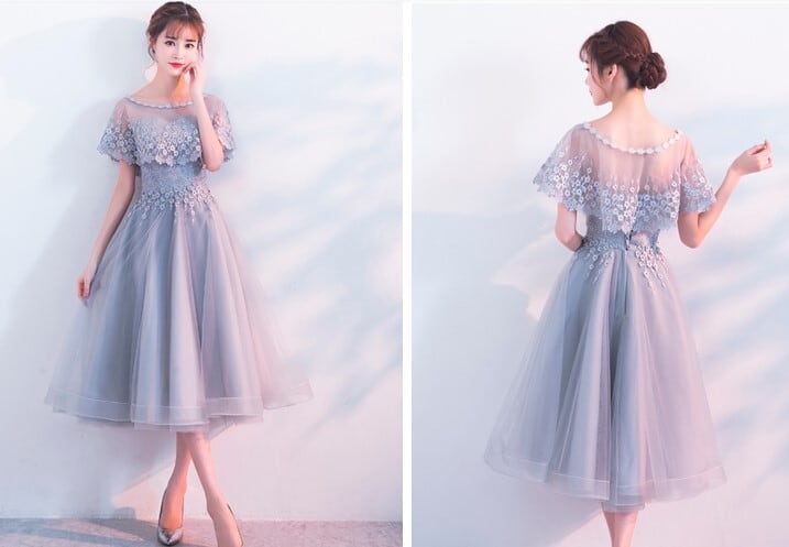 パーティードレス 結婚式 お呼ばれドレス 結婚式のお呼ばれ 20代 30代 40代 フォーマルドレス グレー パーティードレス 膝丈 大きいサイズ お呼ばれ ワンピース 二次会 結婚式 フォーマル オフショル 総レース 体型カバー