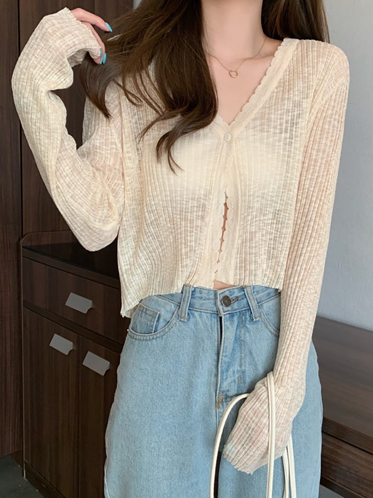 春新作 カーディガン ロング カーディガン レディース 春 秋 ニット レディース 薄手 カーディガン ニット カーディガン ショート丈 長袖 無地 黒 Vネック 韓国ファッション レディース トップス 透け感 UVカット 日焼け除け 冷房除け