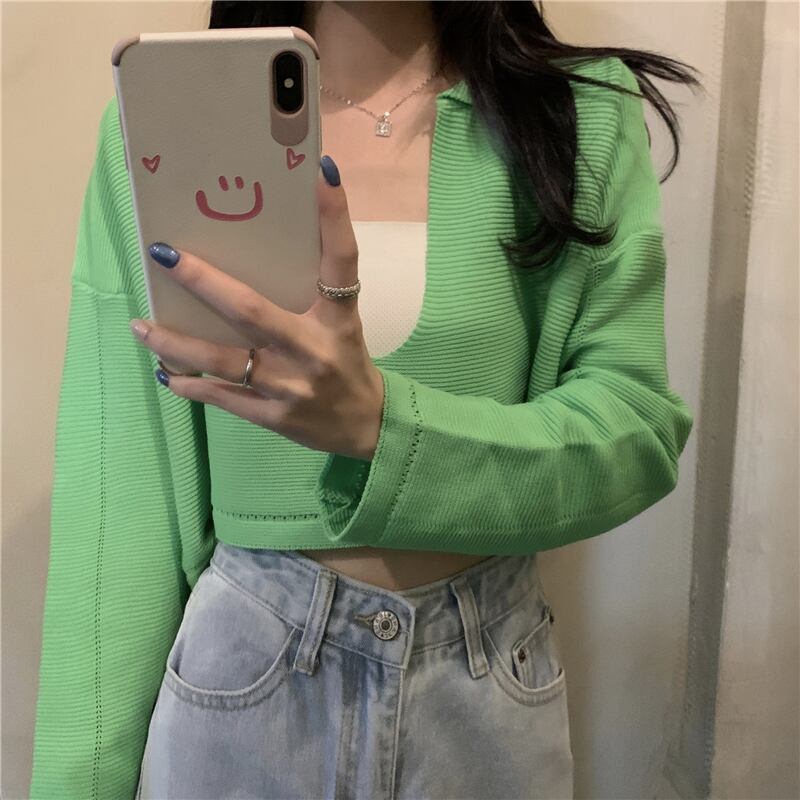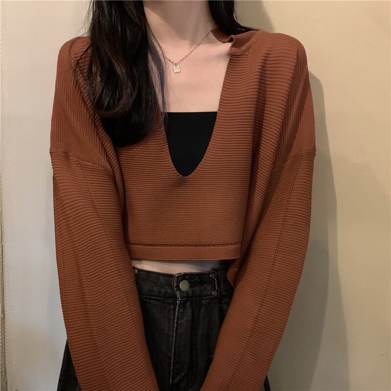 人気のショート丈のニットセーター。