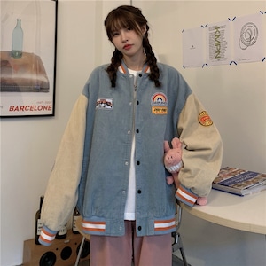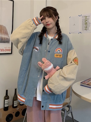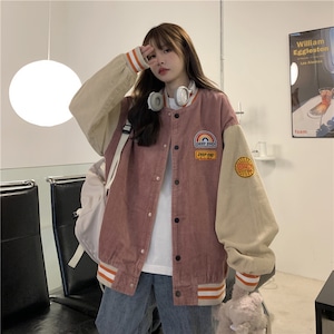 ブルゾン スタジャン コーデュロイ レディース レディースブルゾン ジャンパー 春 秋 冬 ブルゾン レディース ジャケット アウター ブルゾン 春秋 韓国ファッション カジュアル ロゴ ガーリー キュート キャンディカラー ピンク ブルー アウトドア