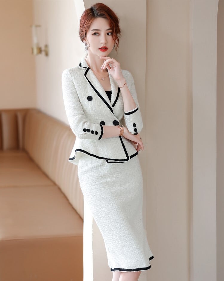 パイピングが大人っぽさを演出してくれるパーティドレス。