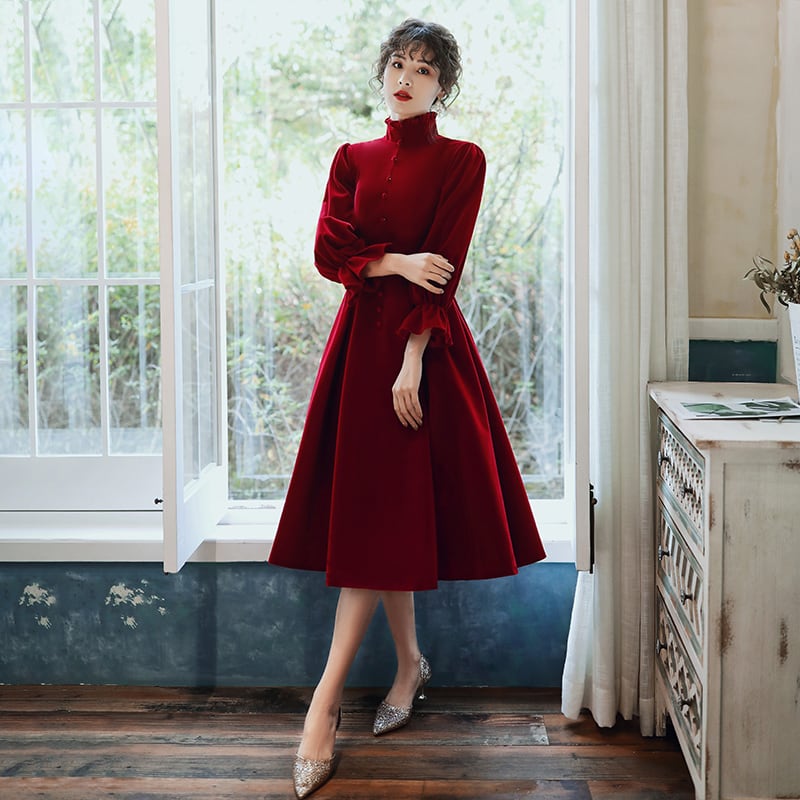 パーティードレス 結婚式 お呼ばれドレス 結婚式のお呼ばれ 20代 30代 40代 フォーマルドレス 袖あり 結婚式 ワンピース 黒 パーティードレス 膝丈 お呼ばれ 二次会 結婚式 フォーマル 大きいサイズ フォーマルワンピース ベルベット レッド