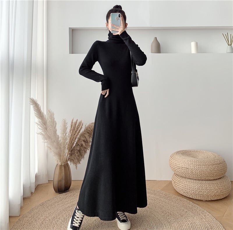 ワンピース 秋 ワンピース 冬 ワンピース リブニット ロング ワンピース マタニティ ワンピース レディース ロング ロング丈 長袖 ニット ワンピース 韓国 ワンピース 長袖 ロングワンピース 黒 春秋 カジュアル おうち時間