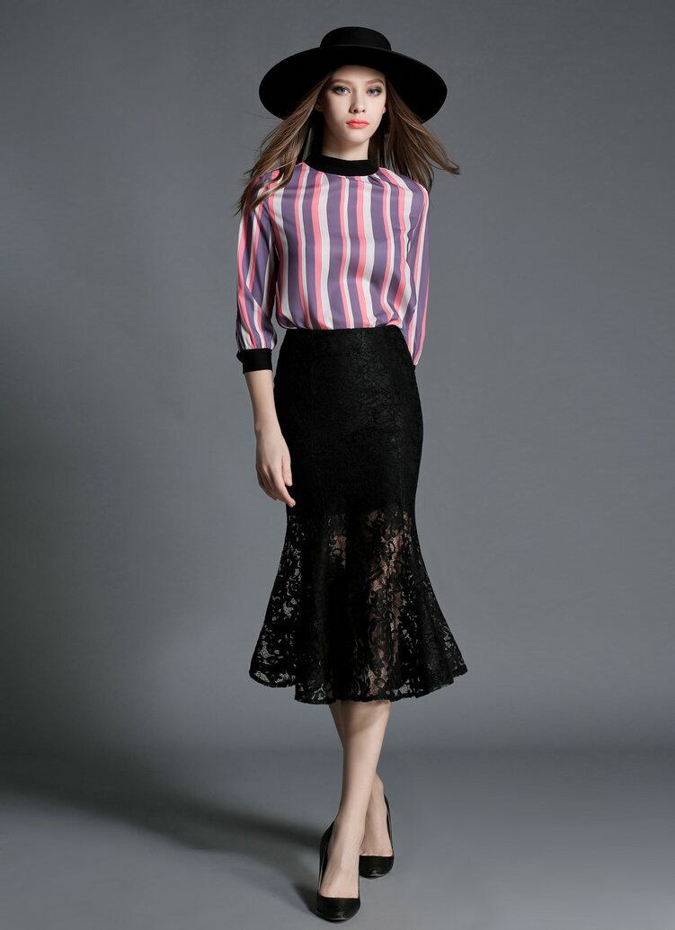 スカート ハイウエスト レディース ロングスカート レース マーメイドライン スカート ミディ丈 ブラック ハイウエスト