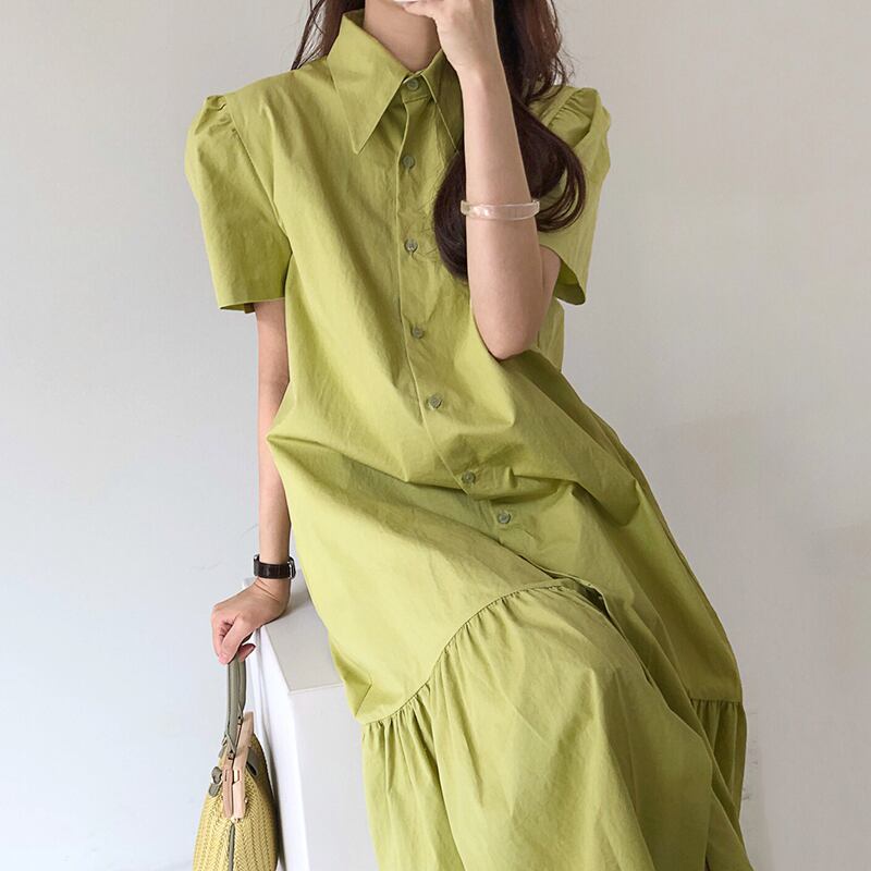 ティアードシャツワンピース 春新作 ワンピース 春 夏 ロング カラーワンピース ロングワンピース レディース シャツワンピース ロングtシャツワンピース ロング丈 韓国ワンピース 半袖 春秋