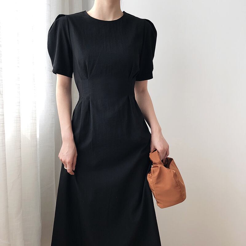 パフスリーブワンピース 春新作 ワンピース 春 夏 ロング ロングワンピース パフスリーブ レディース ロングワンピース ロング丈 韓国ワンピース 半袖 黒 春秋