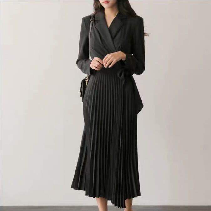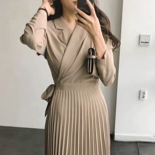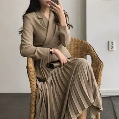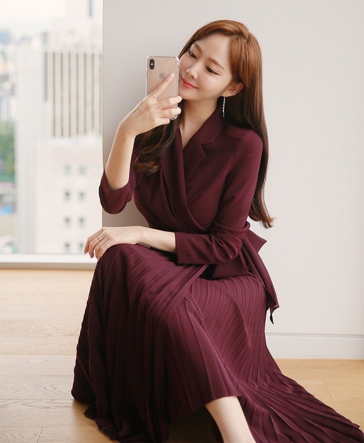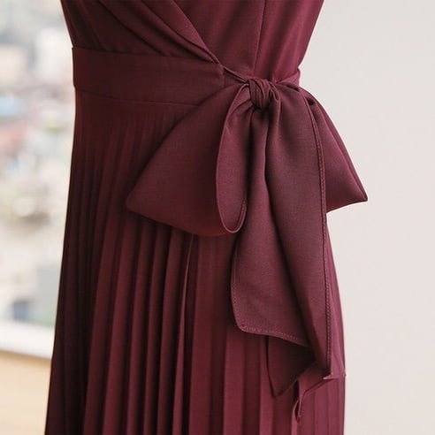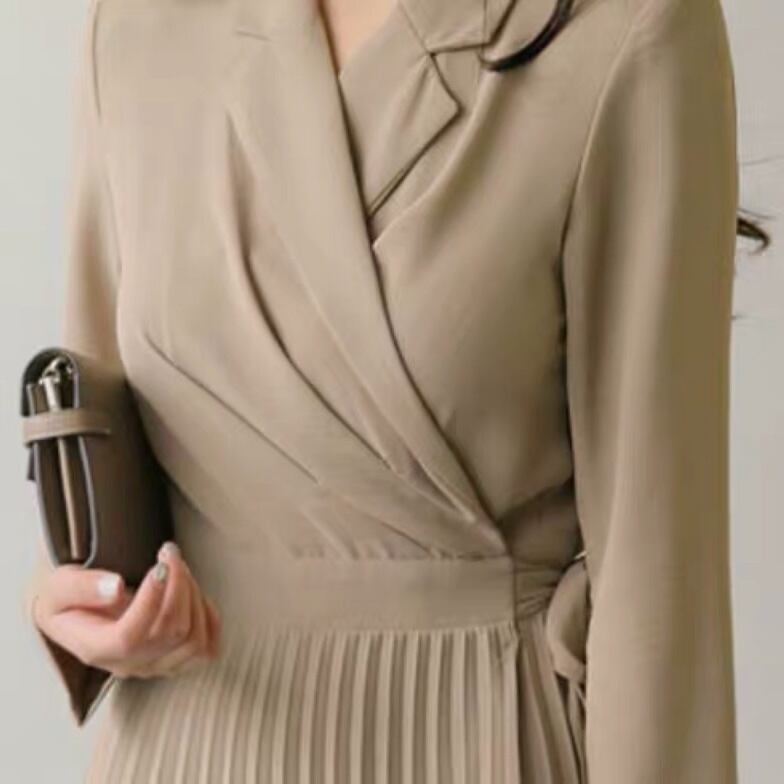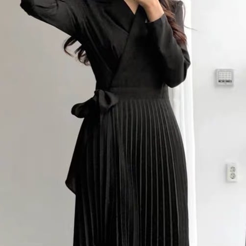 大人の余裕を漂わせるシックなプリーツワンピース。