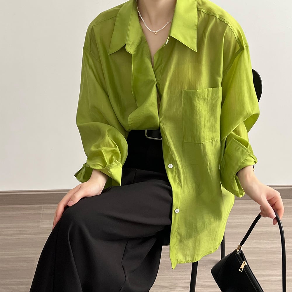 今年人気のシアー素材の透け感が綺麗なシャツです。
