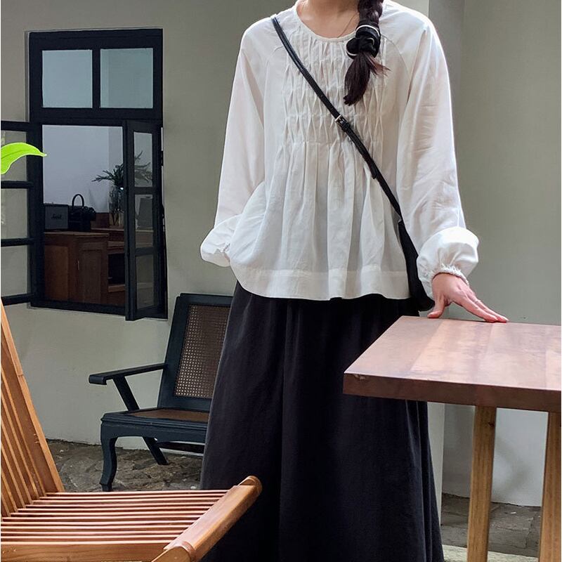 プリーツやボリューム感のある袖がアクセントになったデザイン性の高いブラウスです。