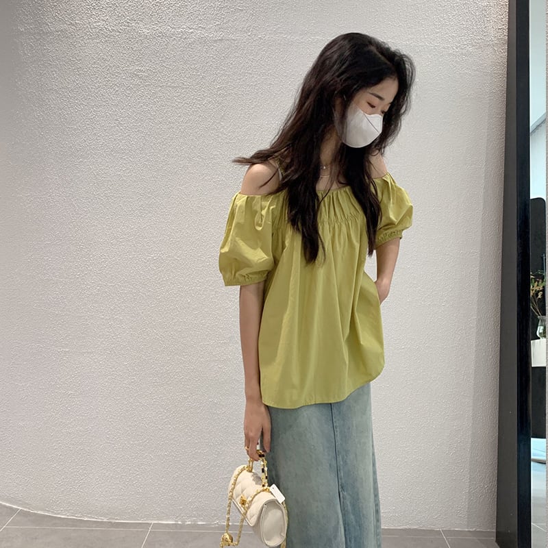 春新作 ブラウス レディース シャツ ブラウス 韓国 春 秋 冬 シアー素材 長袖 無地 大人可愛い フォーマルブラウス オフィス 韓国ファッション レディーストップス ボリューム袖 体型カバー ゆったりシルエット オフショル