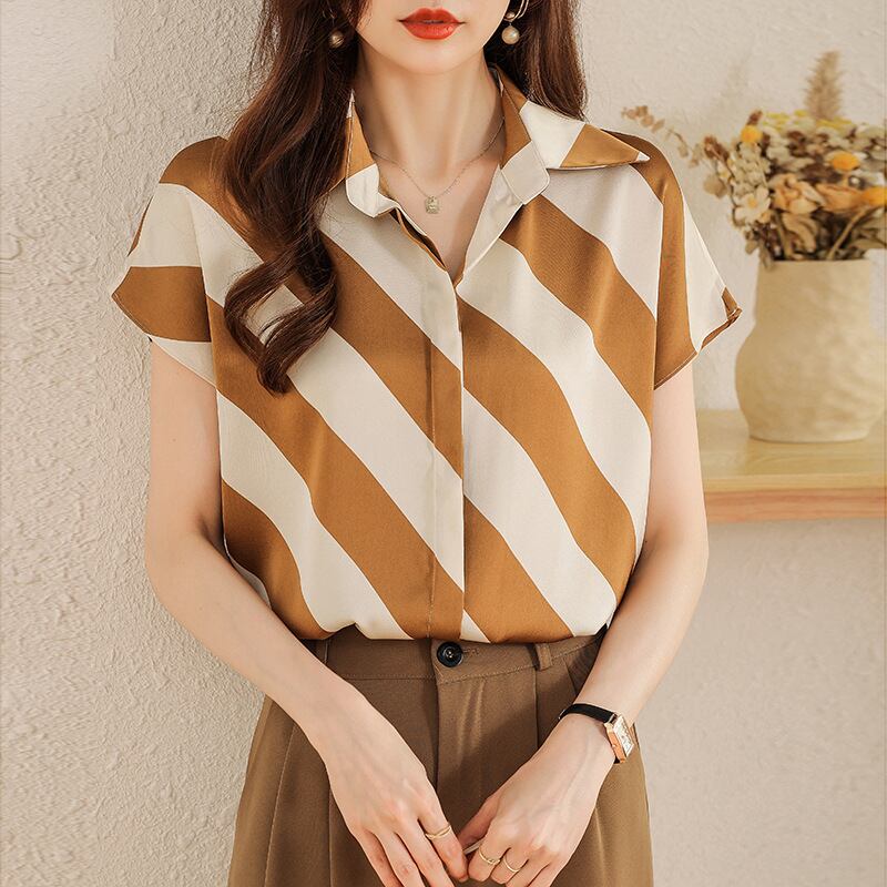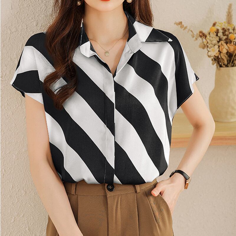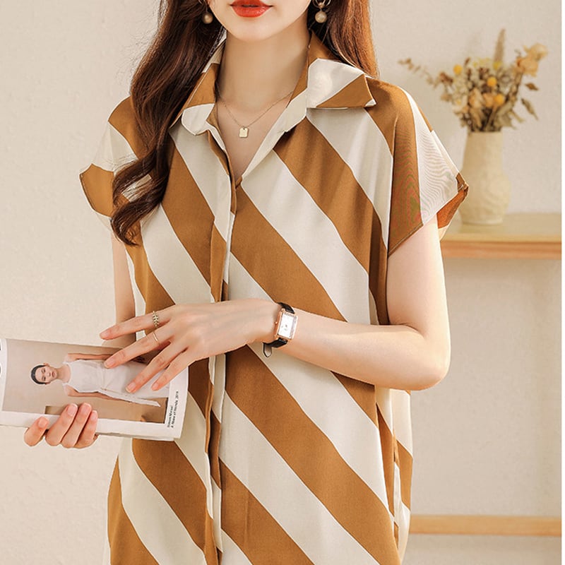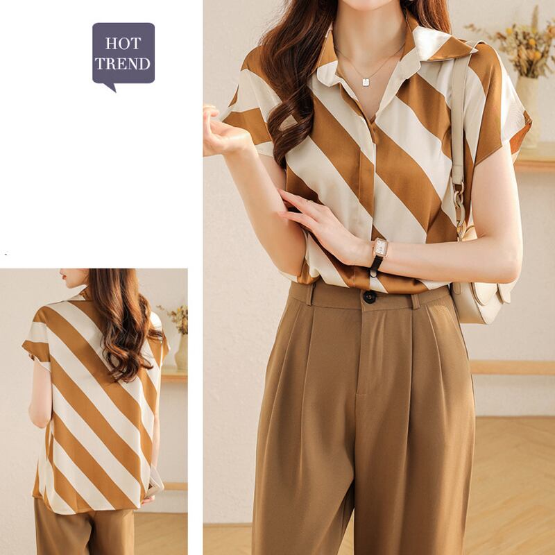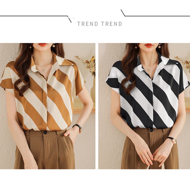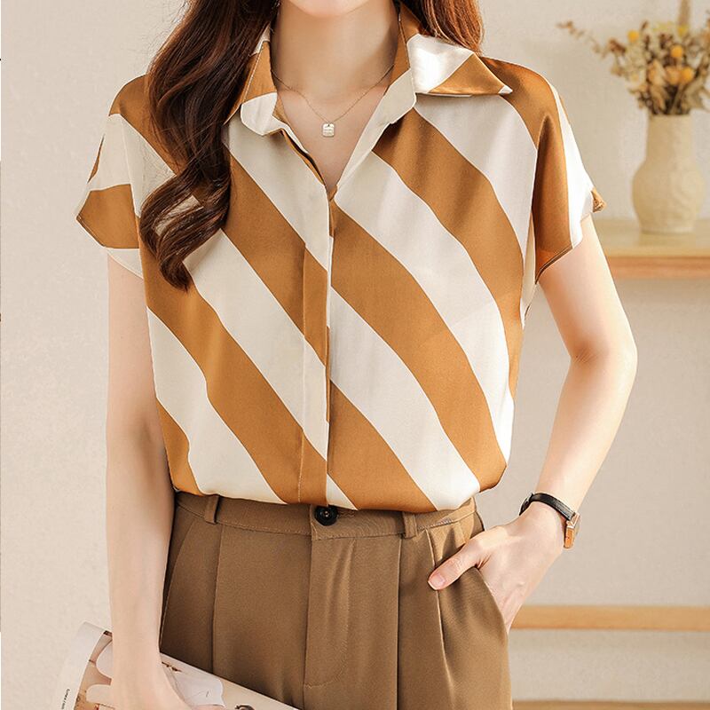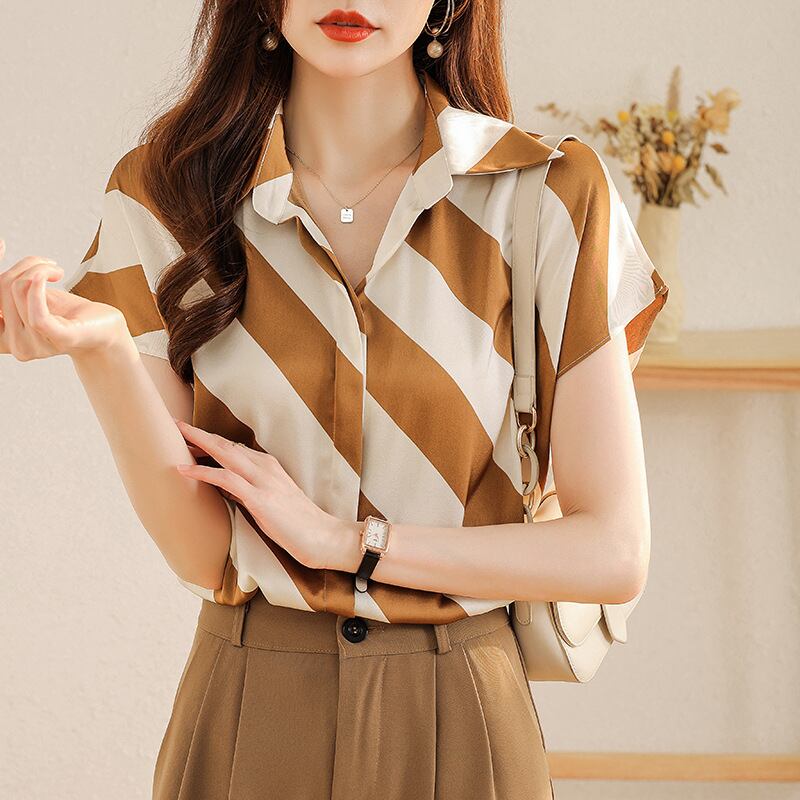 春新作 ブラウス レディース シャツ ブラウス 韓国 春 秋 オフィス 大きいサイズ シャツブラウス レディース 半袖 大人可愛い フォーマルブラウス オフィス 韓国ファッション レディーストップス ストライプ イエロー ブラック