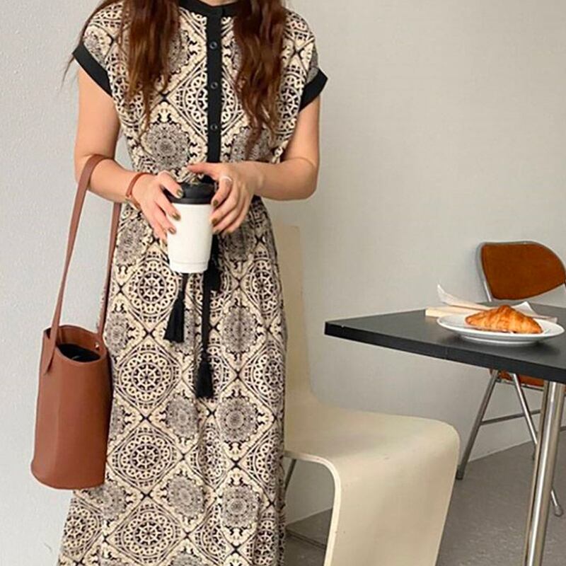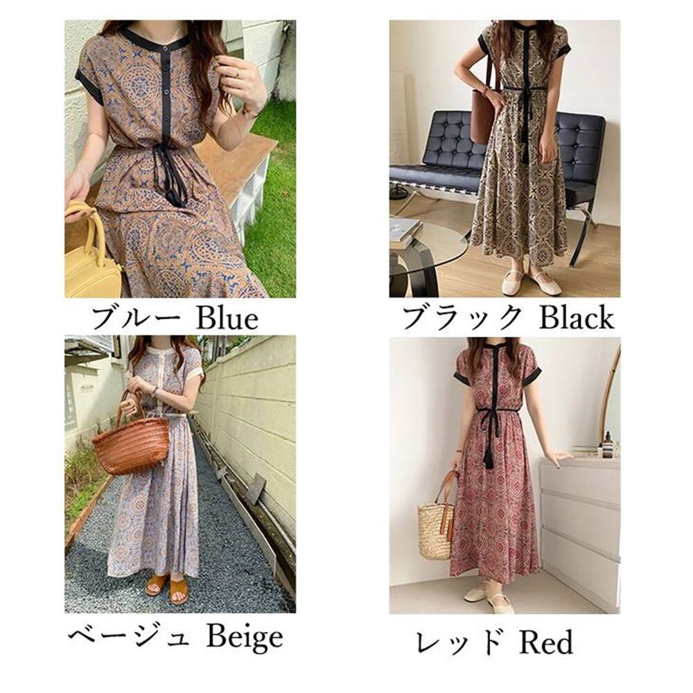 春新作 ワンピース 春 夏 ロング マタニティ 幾何学模様 ロングワンピース レディース ロング丈 フレンチスリーブ 半袖 韓国ワンピース ドレス 春秋 20代 30代 40代 デート服 大人可愛い