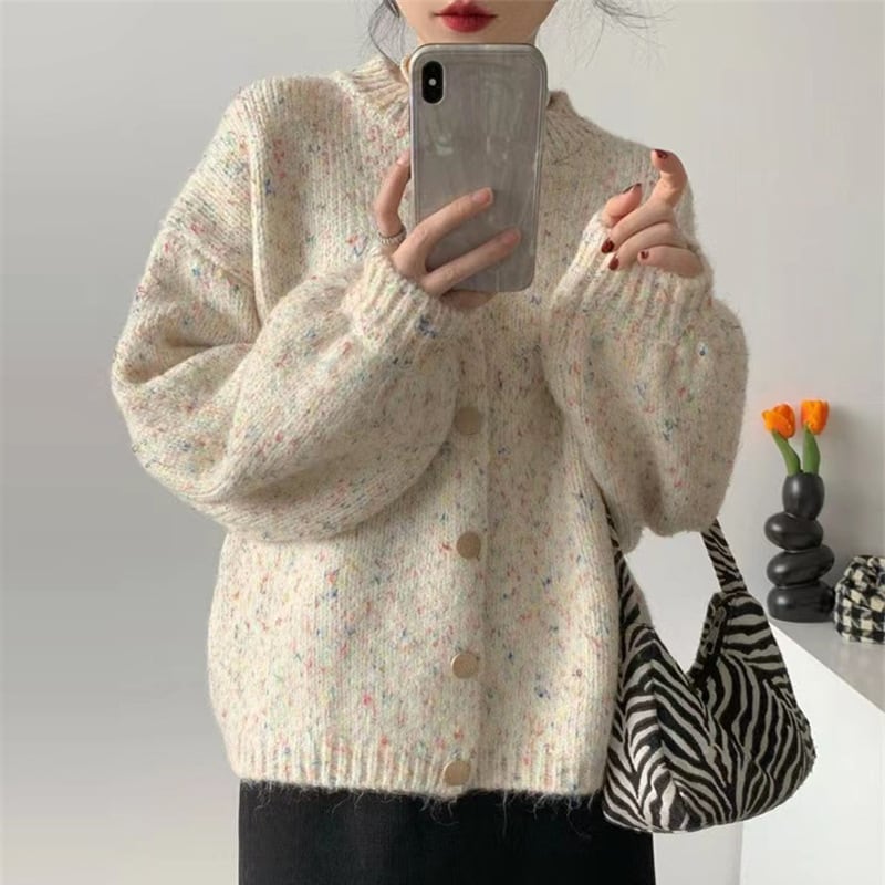 織り込まれたカラーネップが愛らしいニットカーディガン。