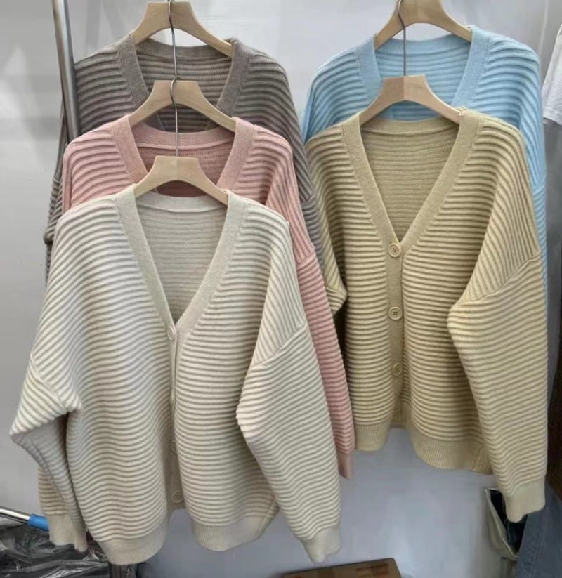 ドロップショルダーのゆったりカーディガン。