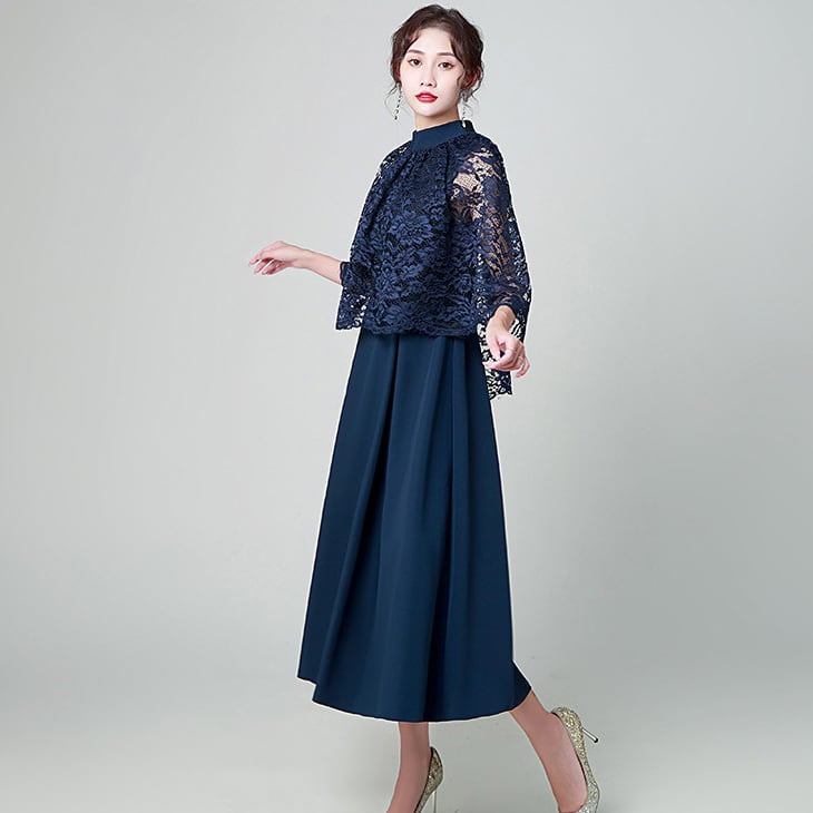 高級感漂うレースがたっぷり施されたパーティドレス。