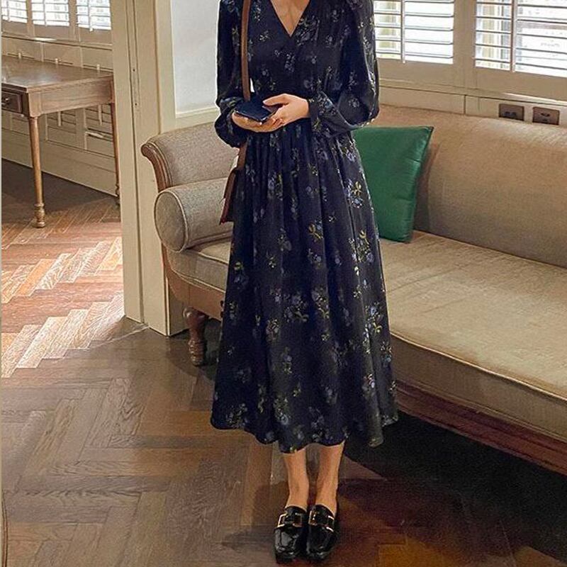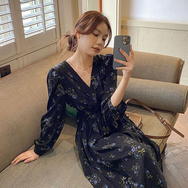 ワンピース 春 秋 仏 ロング マタニティ 花柄 ロングワンピース レディース ロング丈 長袖 韓国ワンピース ドレス ブラック 20代 30代 40代 ママさん きれいめ シンプル 大人可愛い デート服