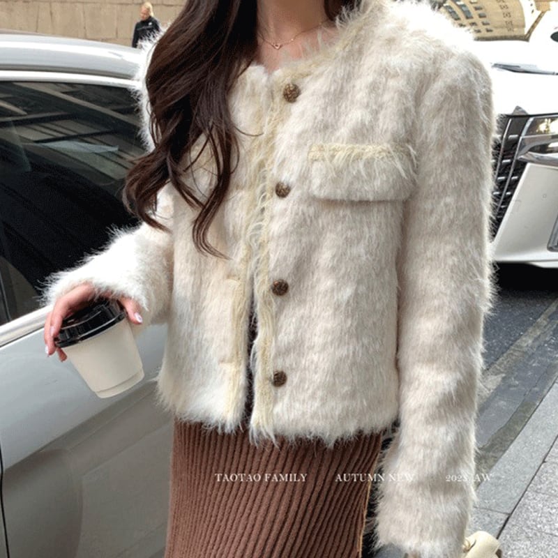 コート レディース フェイクファージャケット ジャケット アウター 春 秋 冬 ノーカラーコート ホワイト ベージュ ブラウン ポケット付き 20代 30代 デート服 大人可愛い