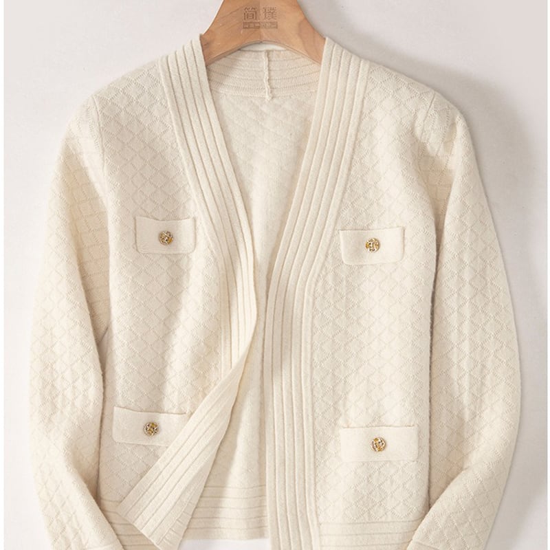 ジャケットにのゴールドボタンがシンプルなデザインのアクセントになっています。