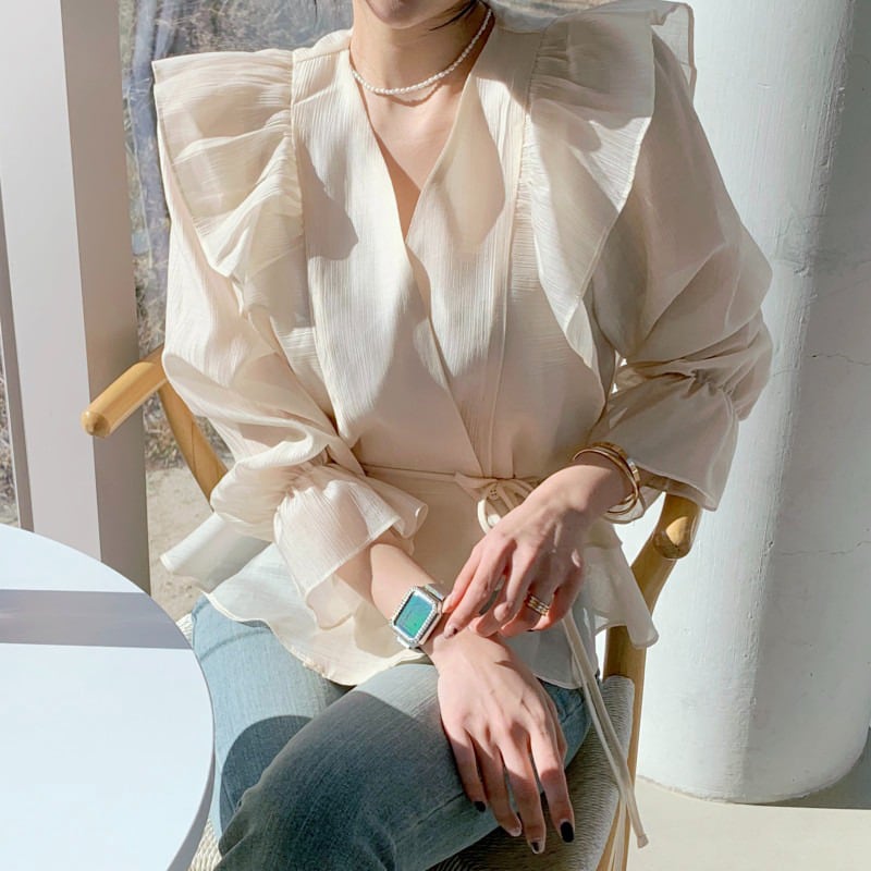 春新作 ブラウス レディース シャツ ブラウス 韓国 春 秋 冬 シフォン フリル ブラウスシャツシャツブラウス レディース 長袖 無地 大人可愛い フォーマルブラウス 韓国ファッション レディーストップス ブルー ベージュ ホワイト ブラック