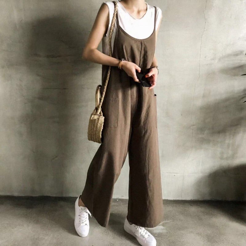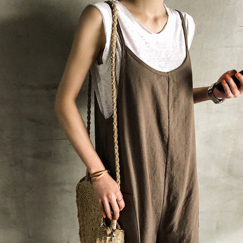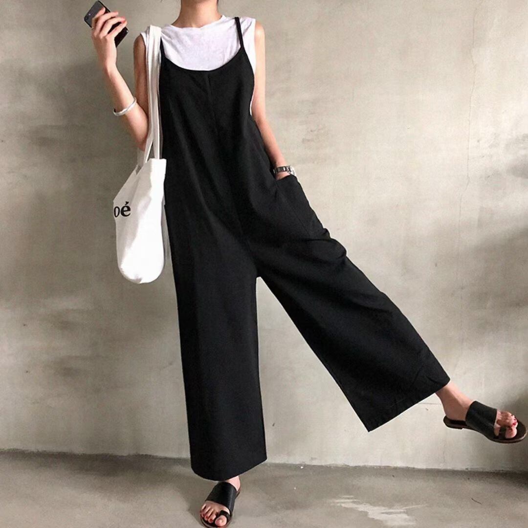 春新作 オールインワン サロペット レディース オールインワンサロペット レディースオールインワン ノースリーブ ワイドパンツ 春 夏 秋 ブラック ブラウン 20代 30代マタニティ 無地 シンプル カジュアル 大人可愛い