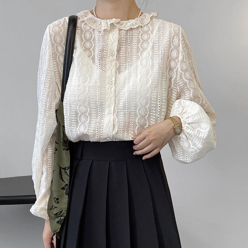 春新作 ブラウス レディース シャツ ブラウス 韓国 春 秋 冬 オフィス レース ブラウスシャツブラウス白 長袖 花柄 大人可愛い フォーマルブラウス オフィス 韓国ファッション レディーストップス ホワイト 20代 30代 ママさん 綺麗め 可愛い