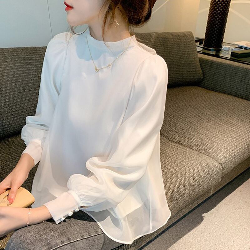 春新作 ブラウス レディース シャツ ブラウス 韓国 春 秋 冬 オフィス シフォン ホワイト ピンク シアー素材 レディース 長袖 無地 大人可愛い フォーマルブラウス オフィス 韓国ファッション レディーストップス