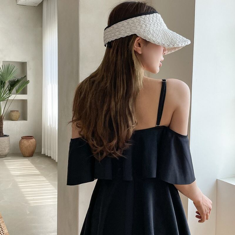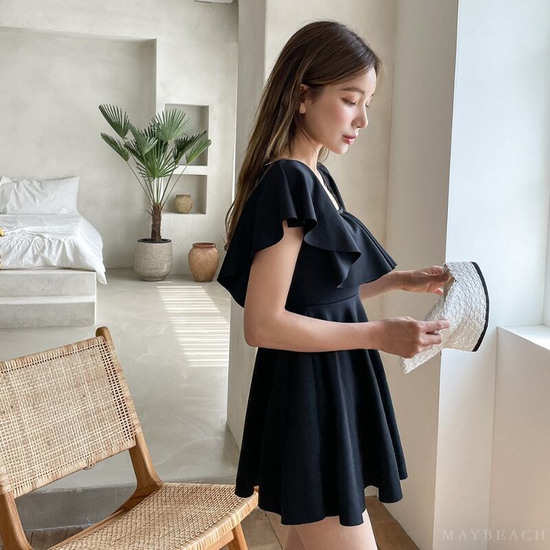 ワンピース 水着 韓国水着 体型カバー水着 ワンピース 40代 30代 20代 体型カバー オールインワン ぽっちゃり オフショルダー 2WAY 無地 フリル ママさん 上品デザイン ブラック ブラウン