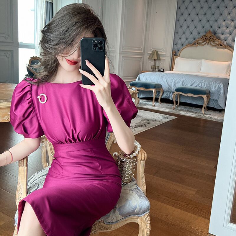 パーティードレス 結婚式 お呼ばれドレス 結婚式のお呼ばれ 20代 30代 40代 フォーマルドレス 半袖 結婚式 ワンピース パープルレッド パーティードレス 膝丈 お呼ばれ 二次会 結婚式フォーマル 無地