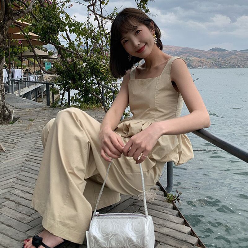セットアップ レディース 上下レディースセットアップ 春 夏 セットアップ ブルー ベージュ ワイドパンツ 20代 30代 シンプル 無地 ノースリーブ