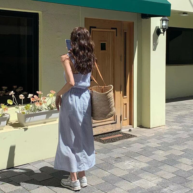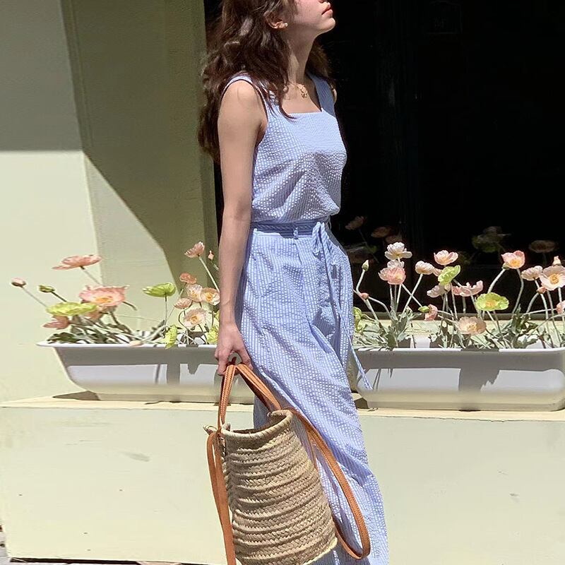 春新作 セットアップ レディース 上下レディースセットアップ 春 夏 セットアップ ブルー チェック 20代 30代 タンクトップ スカート