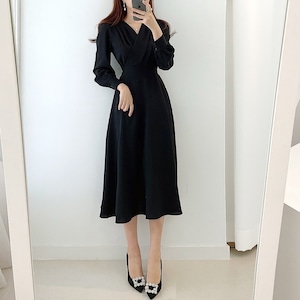ワンピース 春 秋 ロング 無地 カシュクール ロングワンピース レディース ロング丈 長袖 韓国ワンピース ドレス 20代 30代 40代 きれいめ 上品 通勤 通学 ホワイト ブルー ブラック