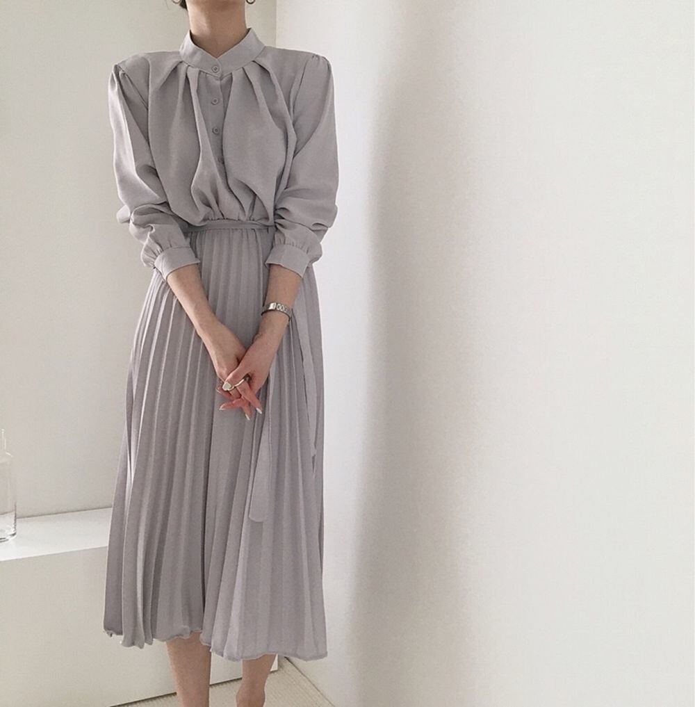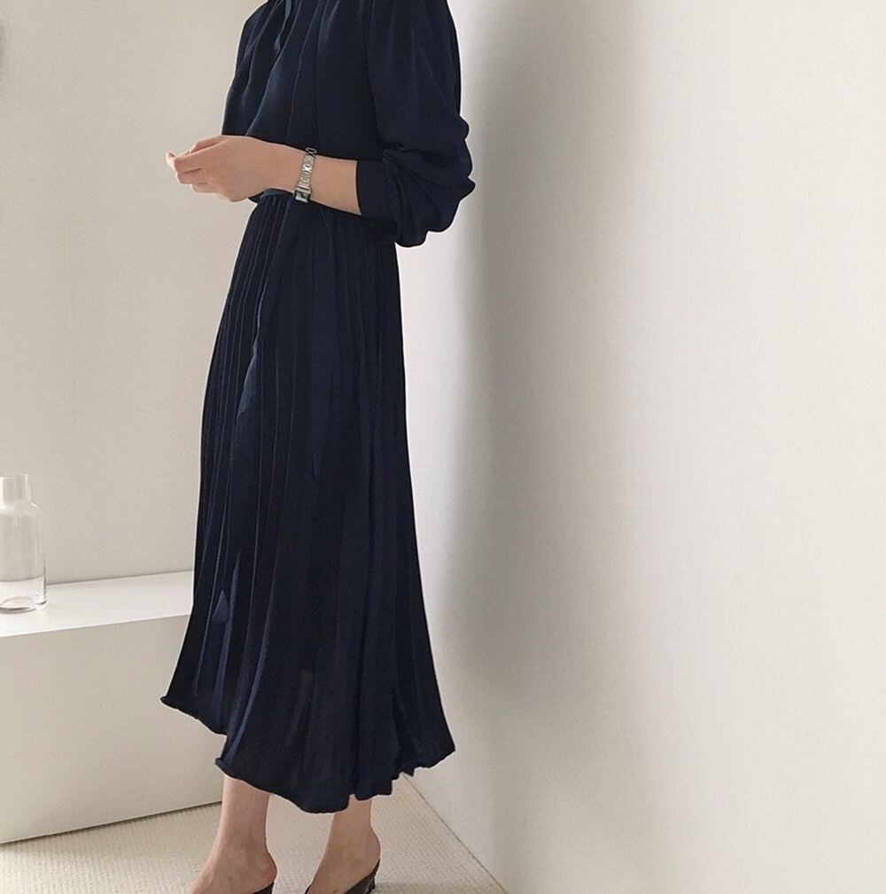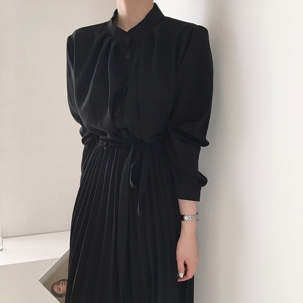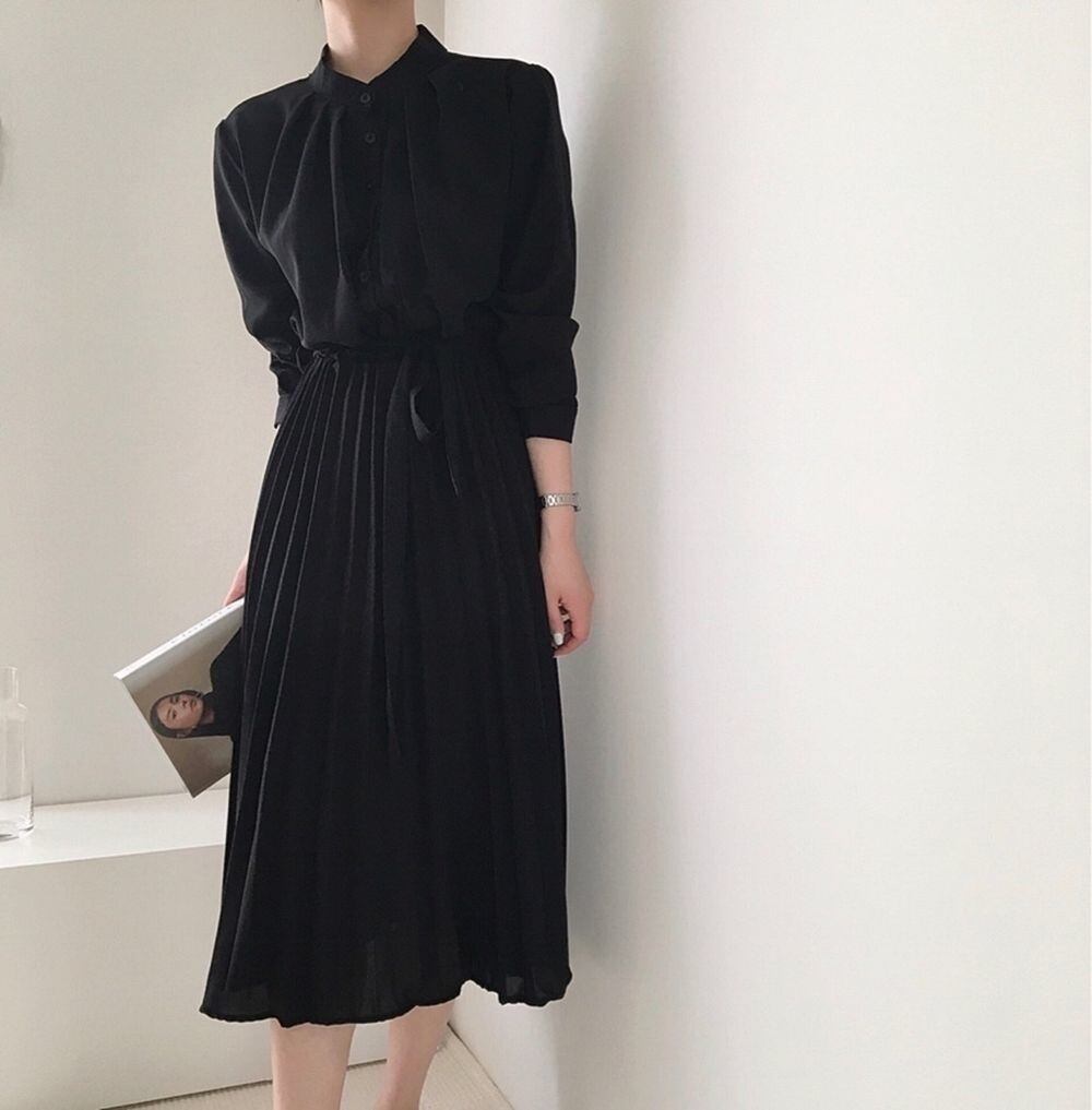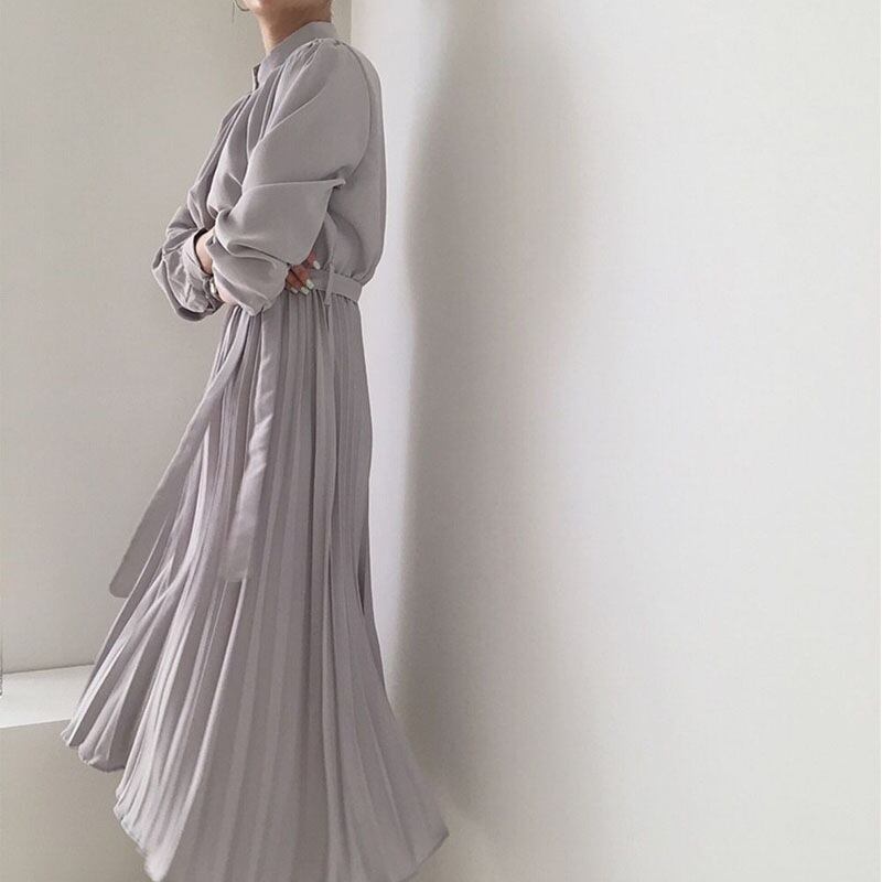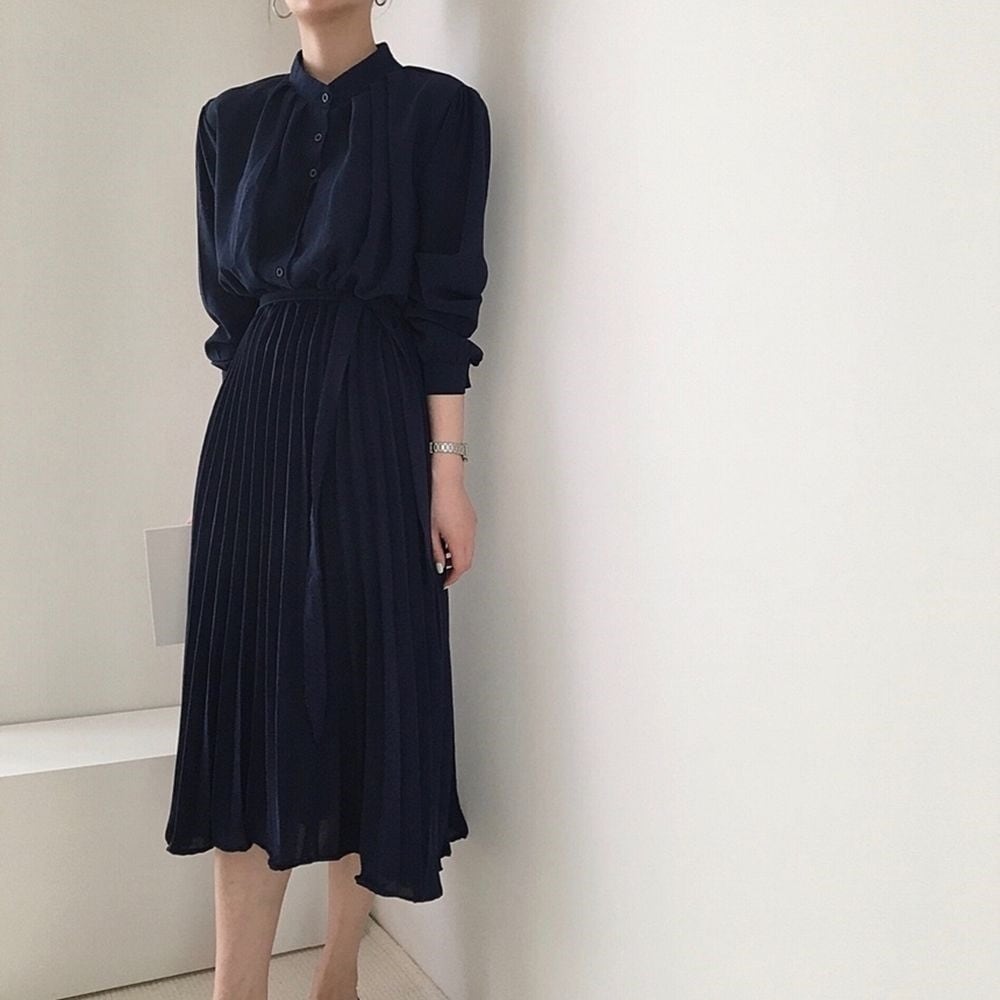 ワンピース 春 夏 ロング 無地 ロングワンピース レディース シャツワンピース ロング丈 長袖 プリーツワンピース 韓国ワンピース ドレス デニム ブラック ネイビー グレー 20代 30代 40代 シンプル 上品 綺麗めワンピース