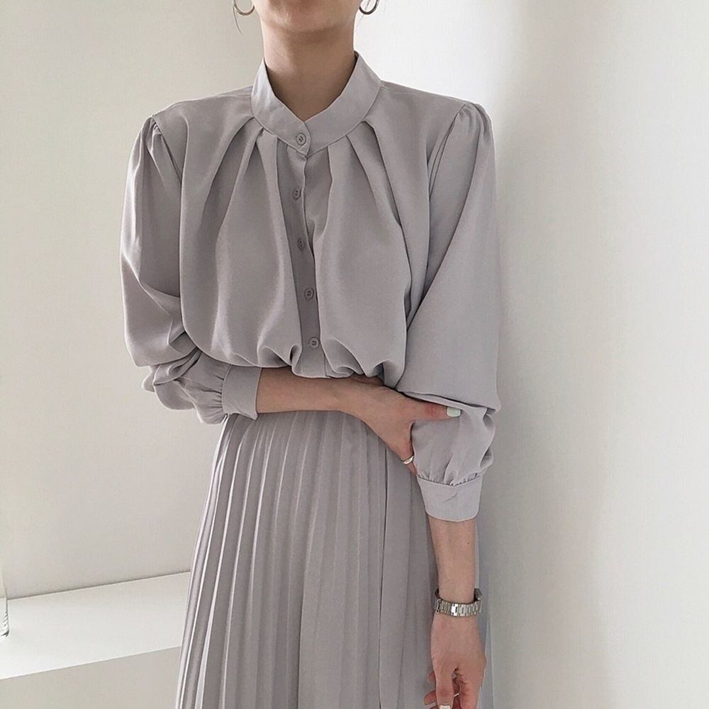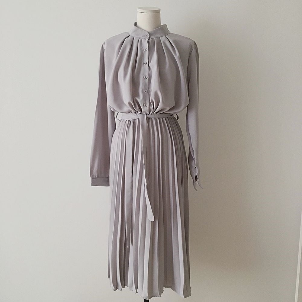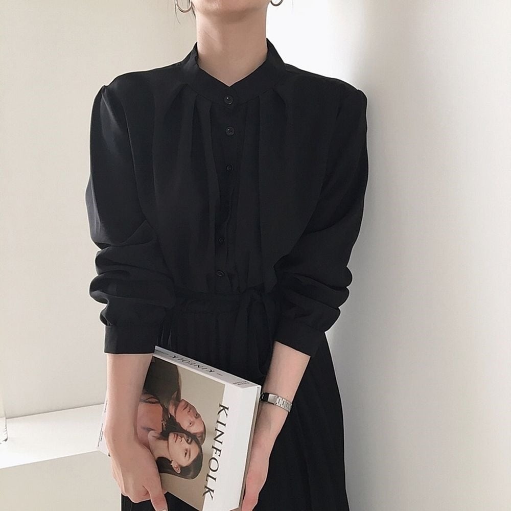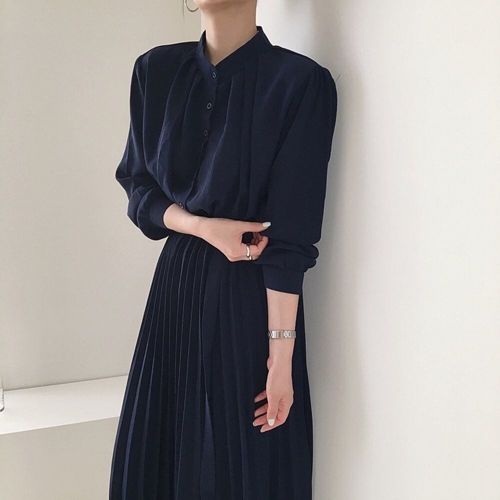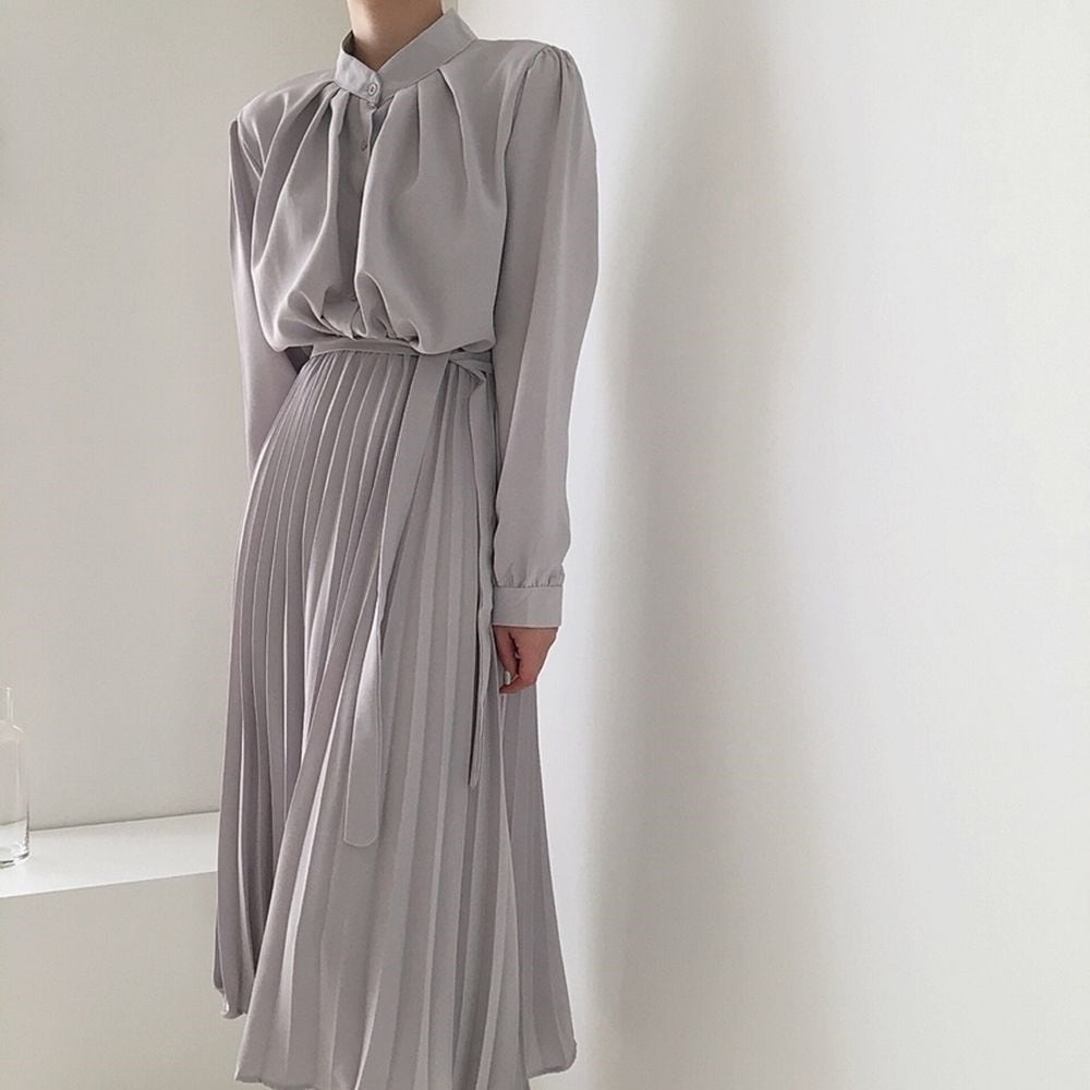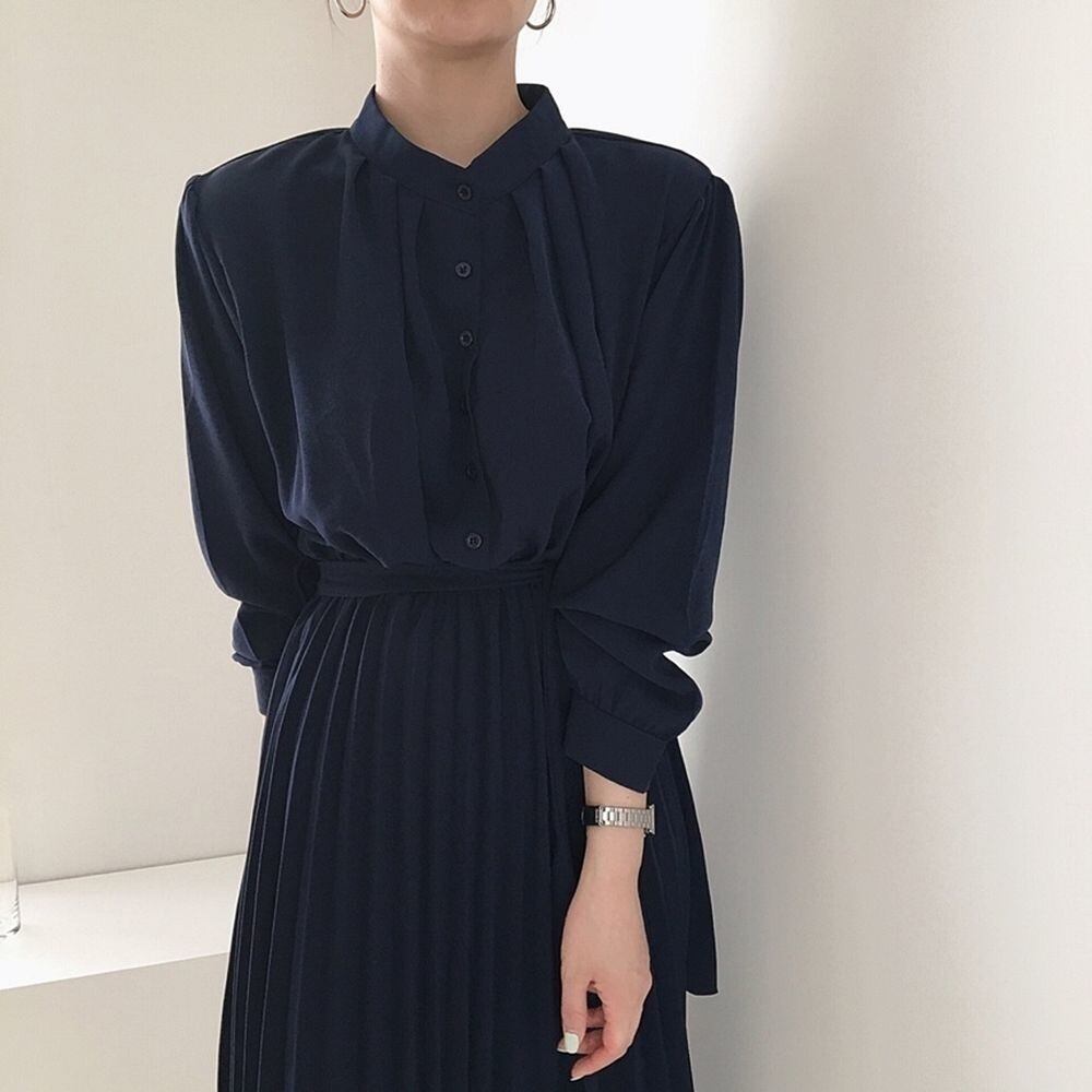 ワンピース 春 夏 ロング 無地 ロングワンピース レディース シャツワンピース ロング丈 長袖 プリーツワンピース 韓国ワンピース ドレス デニム ブラック ネイビー グレー 20代 30代 40代 シンプル 上品 綺麗めワンピース