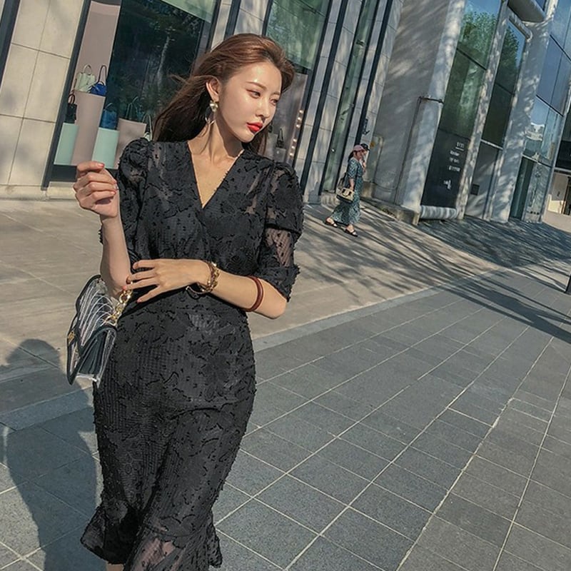 パーティードレス 結婚式 お呼ばれドレス 結婚式のお呼ばれ 20代 30代 40代 フォーマルドレス 袖あり 結婚式 ワンピース 黒 ロングワンピース パーティードレス お呼ばれ ワンピース 二次会 結婚式フォーマル 総レース 体型カバー