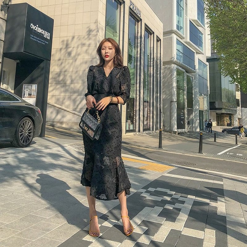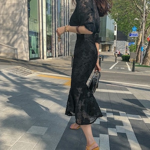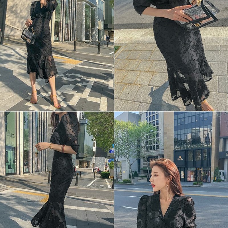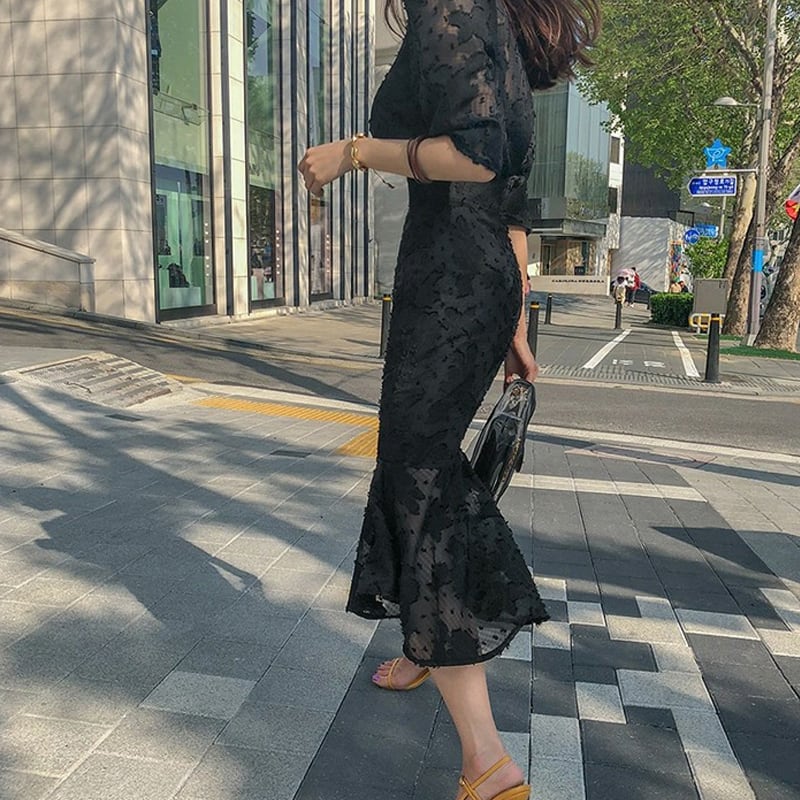 マーメードラインと程よい透け感で高級感漂う大人の女性らしいドレスです。