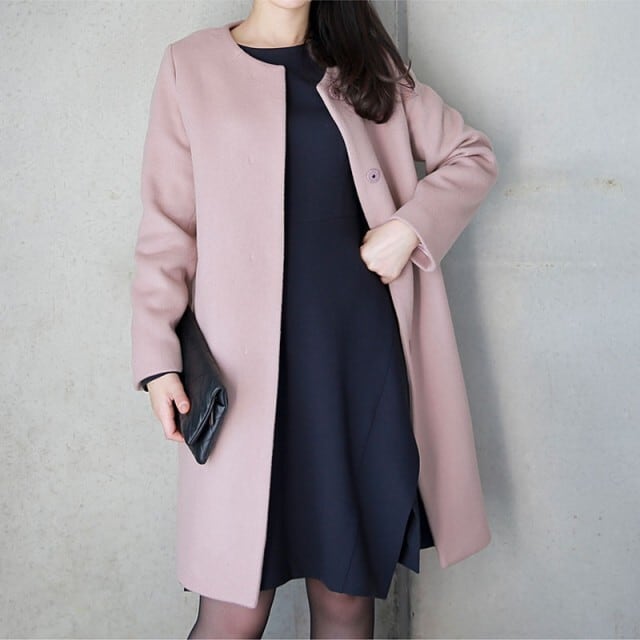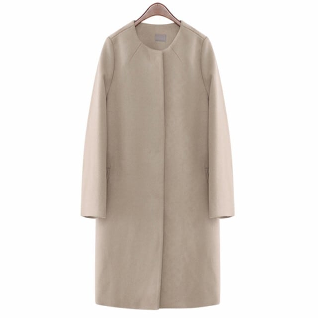 シンプルできれいめなノーカラーコート。