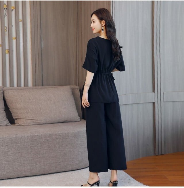 フレアな袖と裾が可愛いトップスとワイドパンツのセットアップです♪